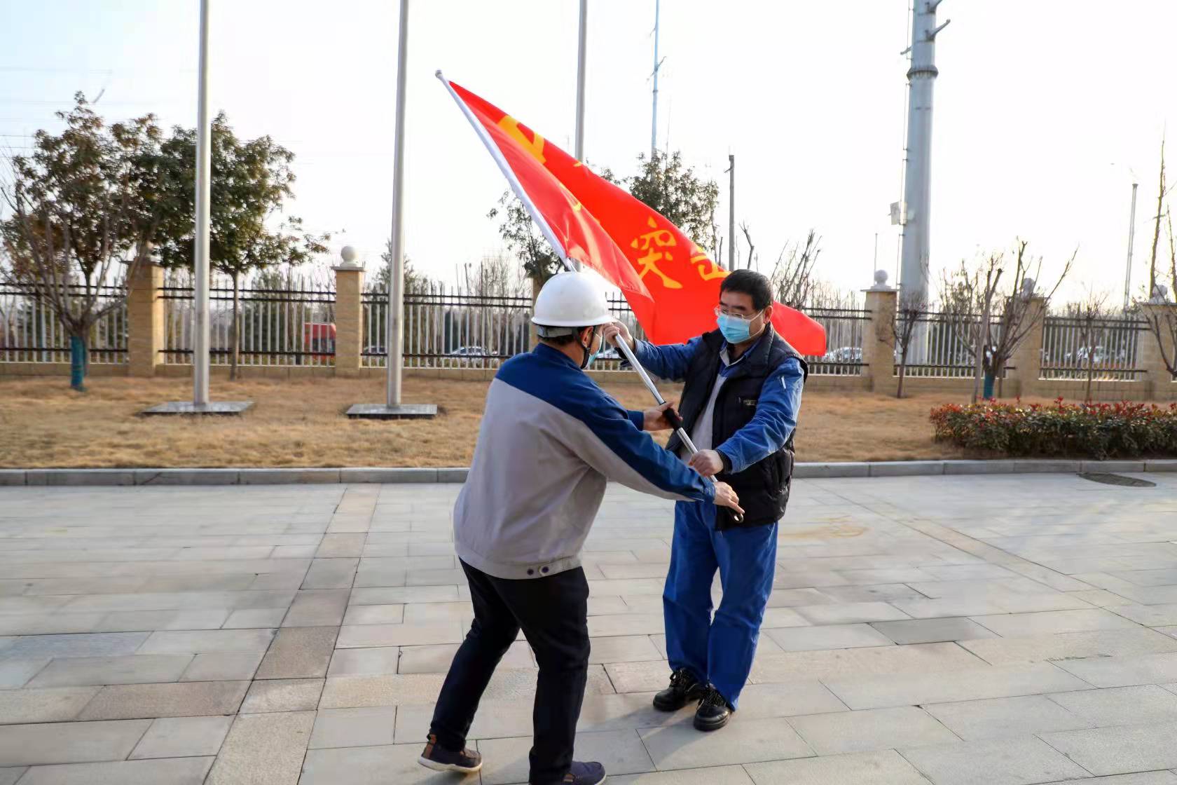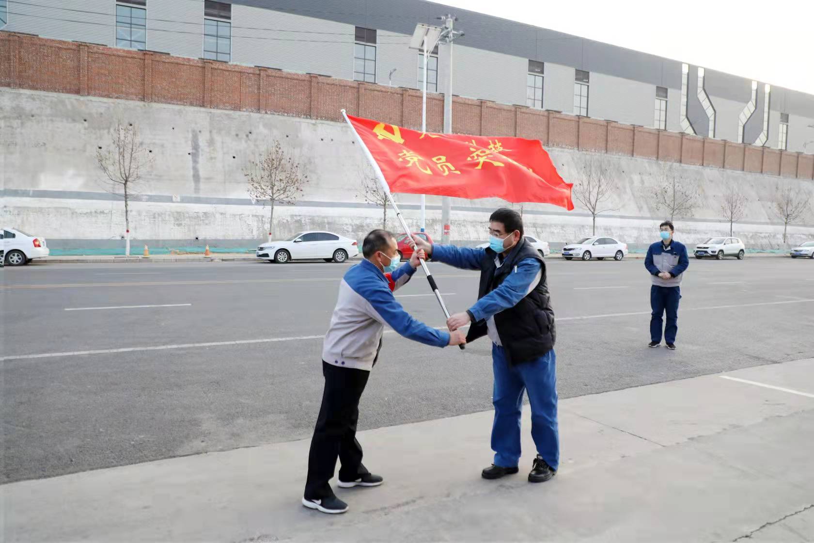 1月14日下午,安彩高科疫情防控黨員突擊隊授旗儀式在各子公司疫情防控點舉行,黨委書記、副總經理陳志剛為安彩高科、光伏新材料、光熱科技、安彩燃氣、安彩能源五個公司授黨員突擊隊旗。